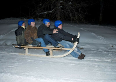 Holen Sie mehr aus Ihrem Team heraus – Mit dem Hörnerschlittenbau des AktivZentrum Allgäu. Jetzt anfragen und unvergessliche Teamerlebnisse schaffen!